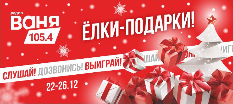 Вот-вот и Новый год! Пора дарить подарки! У Радио Ваня для слушателей есть особый подарок — новая весёлая игра «Ёлки-подарки», которая пройдет в эфире с 22 по 26 декабря. Участникам нужно поймайте в течении дня в эфире песню про ёлочку от Вани Морозова и дозвониться первым по номеру 245-000. Победитель получает 2 билета на праздничную цирковую программу.